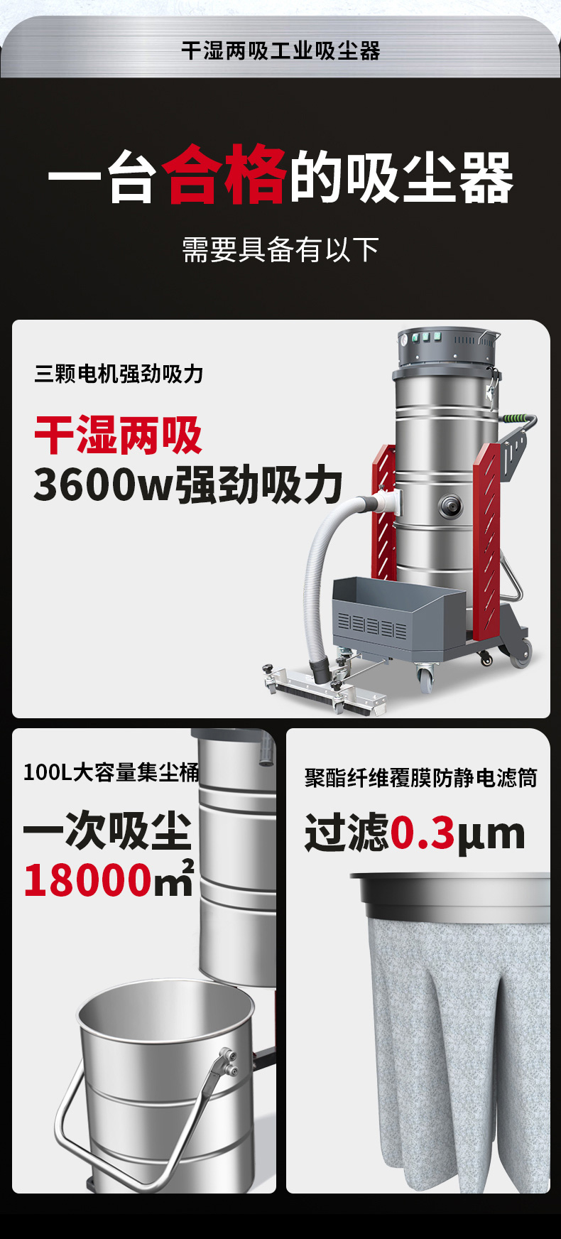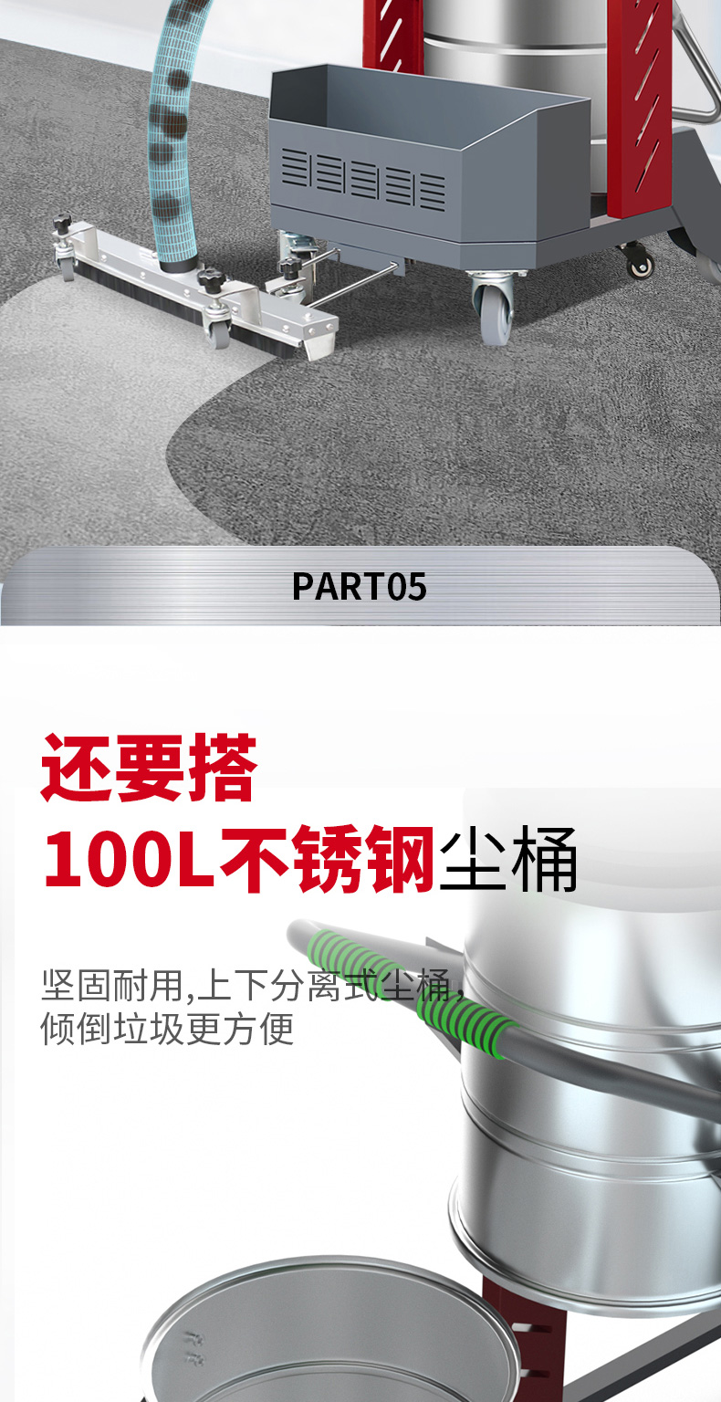 攀枝花坦洁380V双桶不锈钢工业吸尘器X7系列