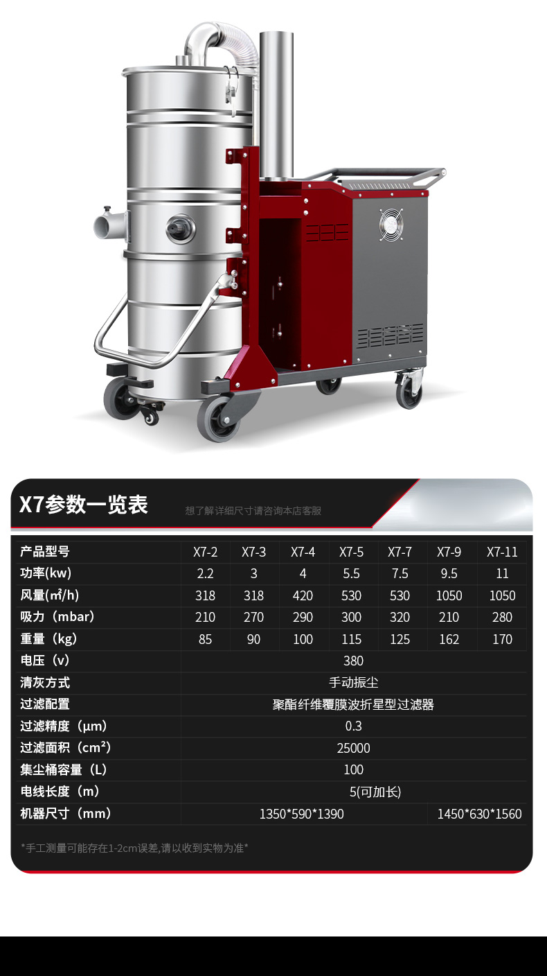 攀枝花坦洁380V双桶不锈钢工业吸尘器X7系列