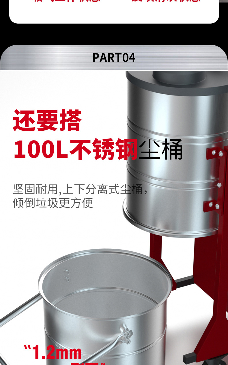 攀枝花坦洁220V单桶不锈钢工业吸尘器X3系列