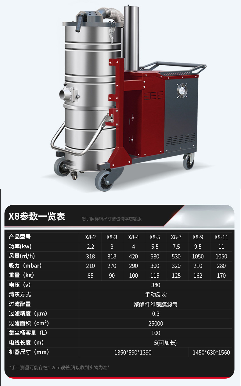 攀枝花坦洁380V双桶不锈钢工业吸尘器X7系列