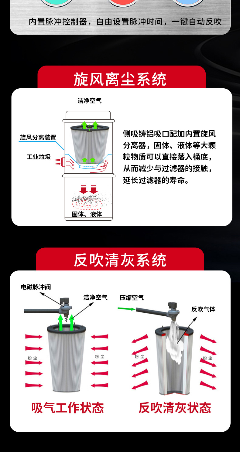 攀枝花坦洁380V脉冲反吹工业吸尘器X9系列