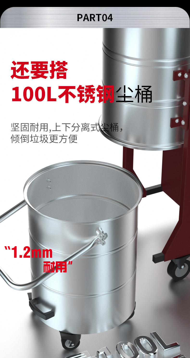 攀枝花坦洁220V单桶不锈钢工业吸尘器X3系列